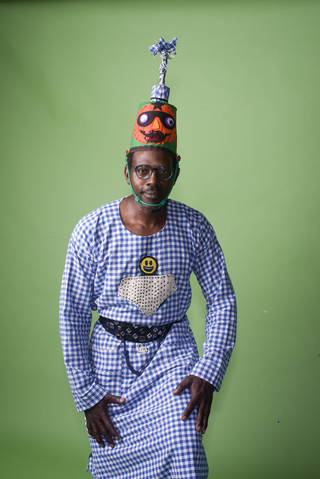 Adamski DJ Smily Man näht sich zu verschiedensten Anlässen Kostüme aus Gebrauchtwaren.